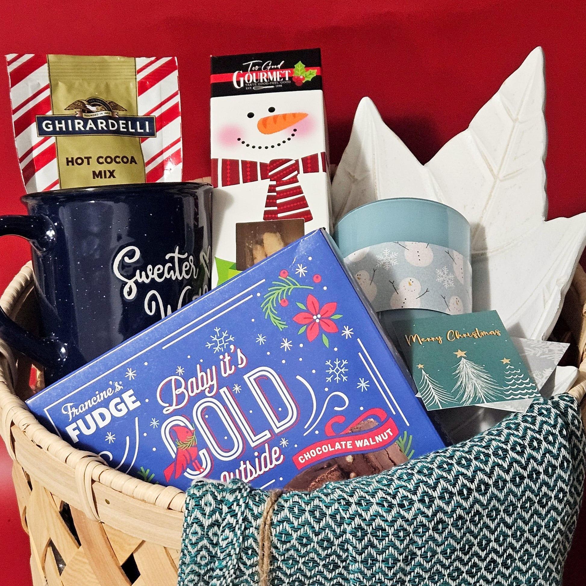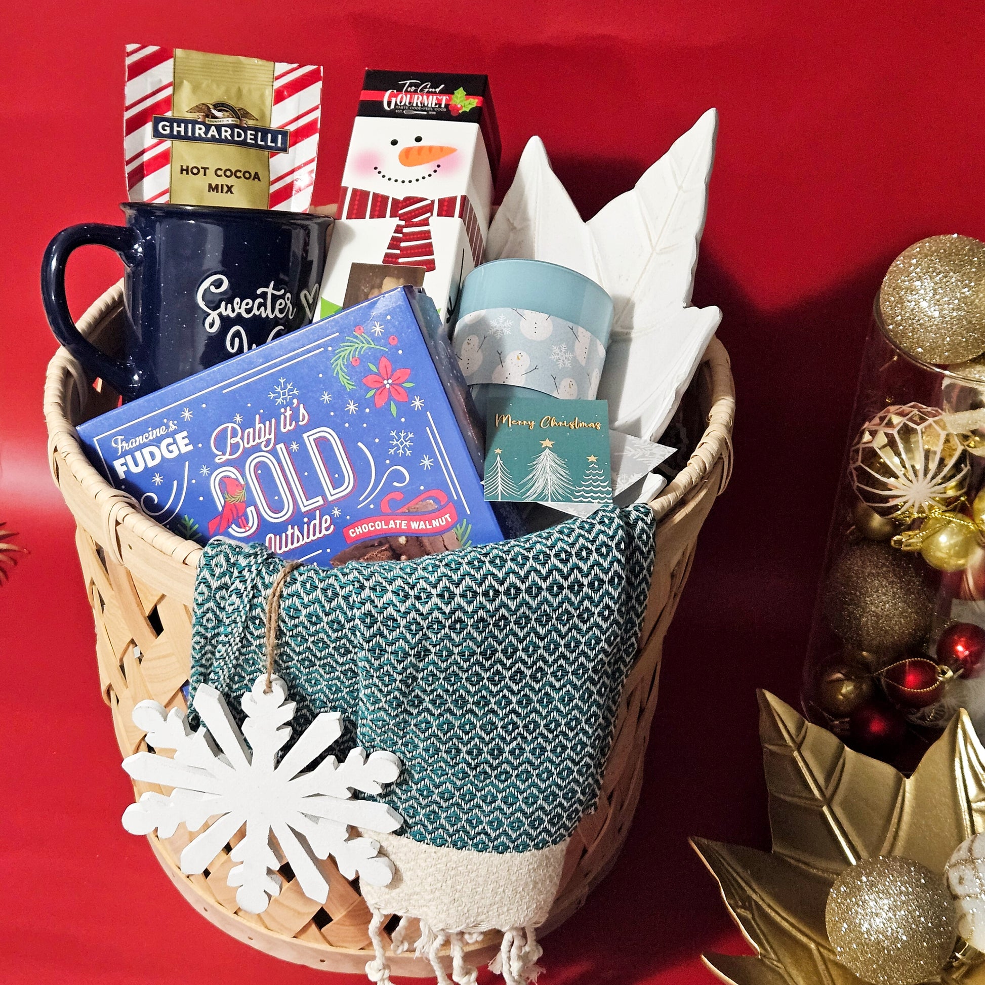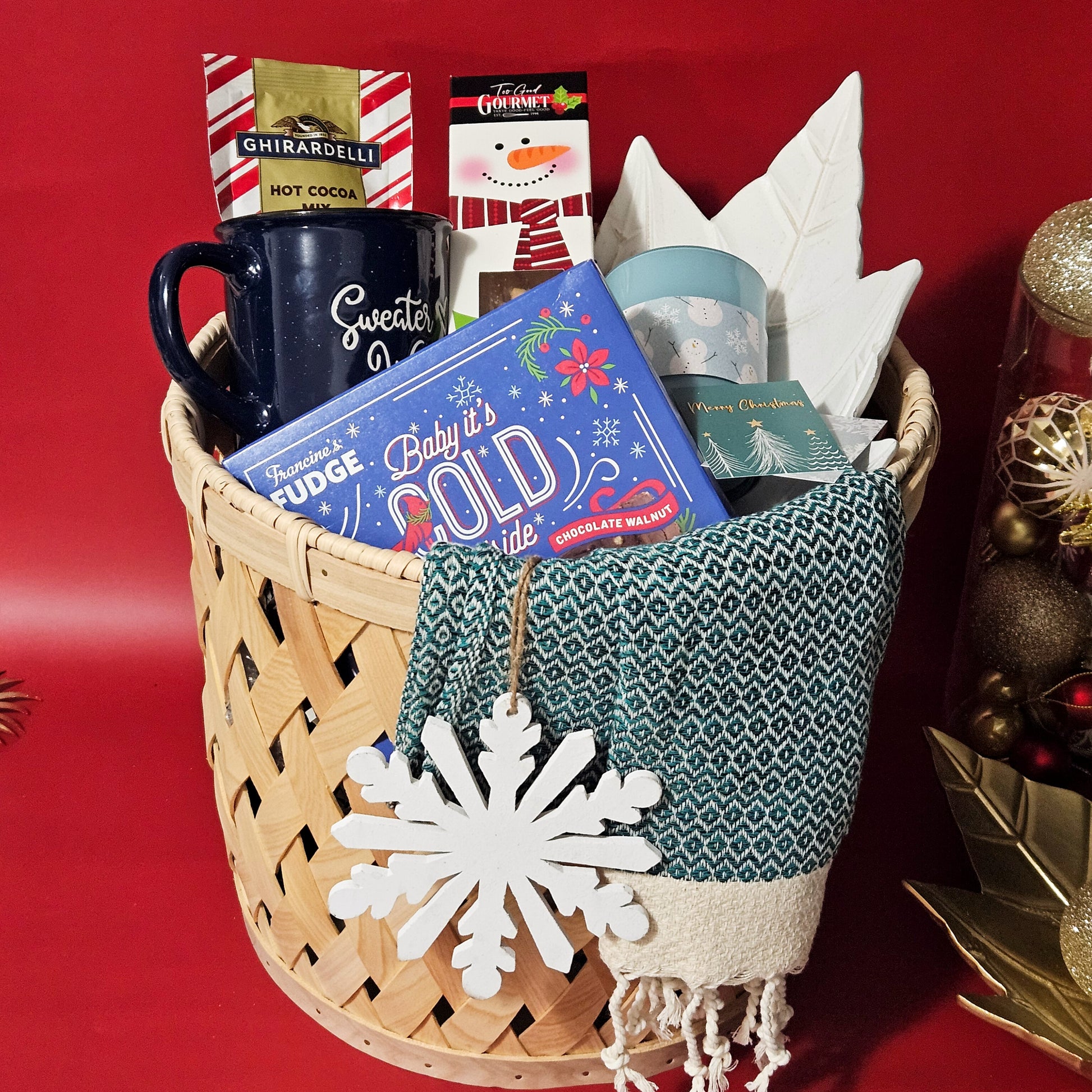 Bring the cozy charm of winter indoors with our Let It Snow Christmas Hamper curated in Knotted cross stitched bucket basket.