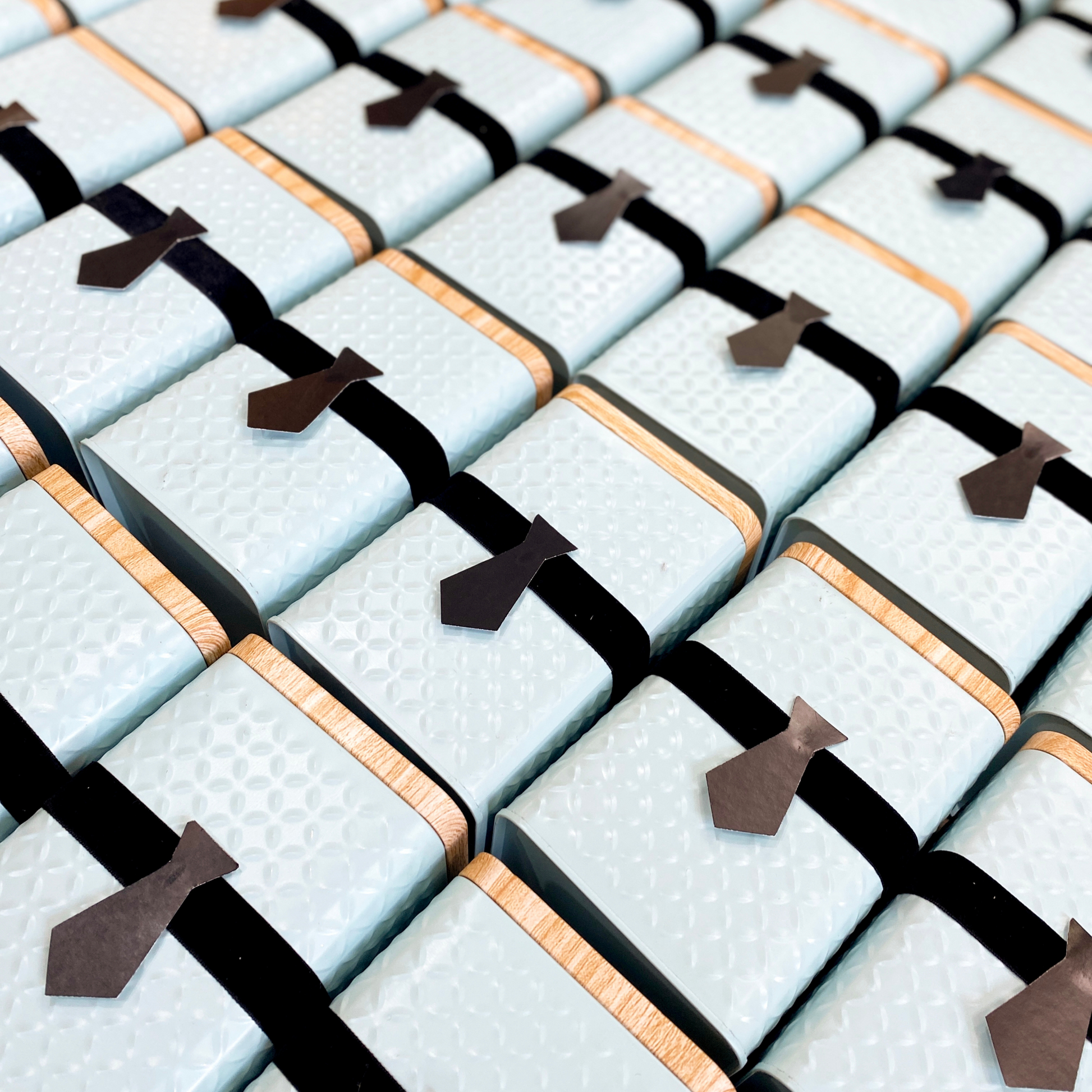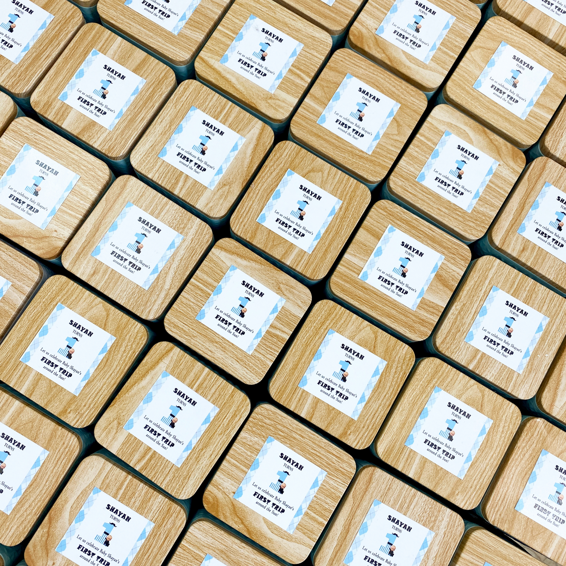 Blue textured tin in Boss Baby theme with a personalized tag card and filling of your choice.