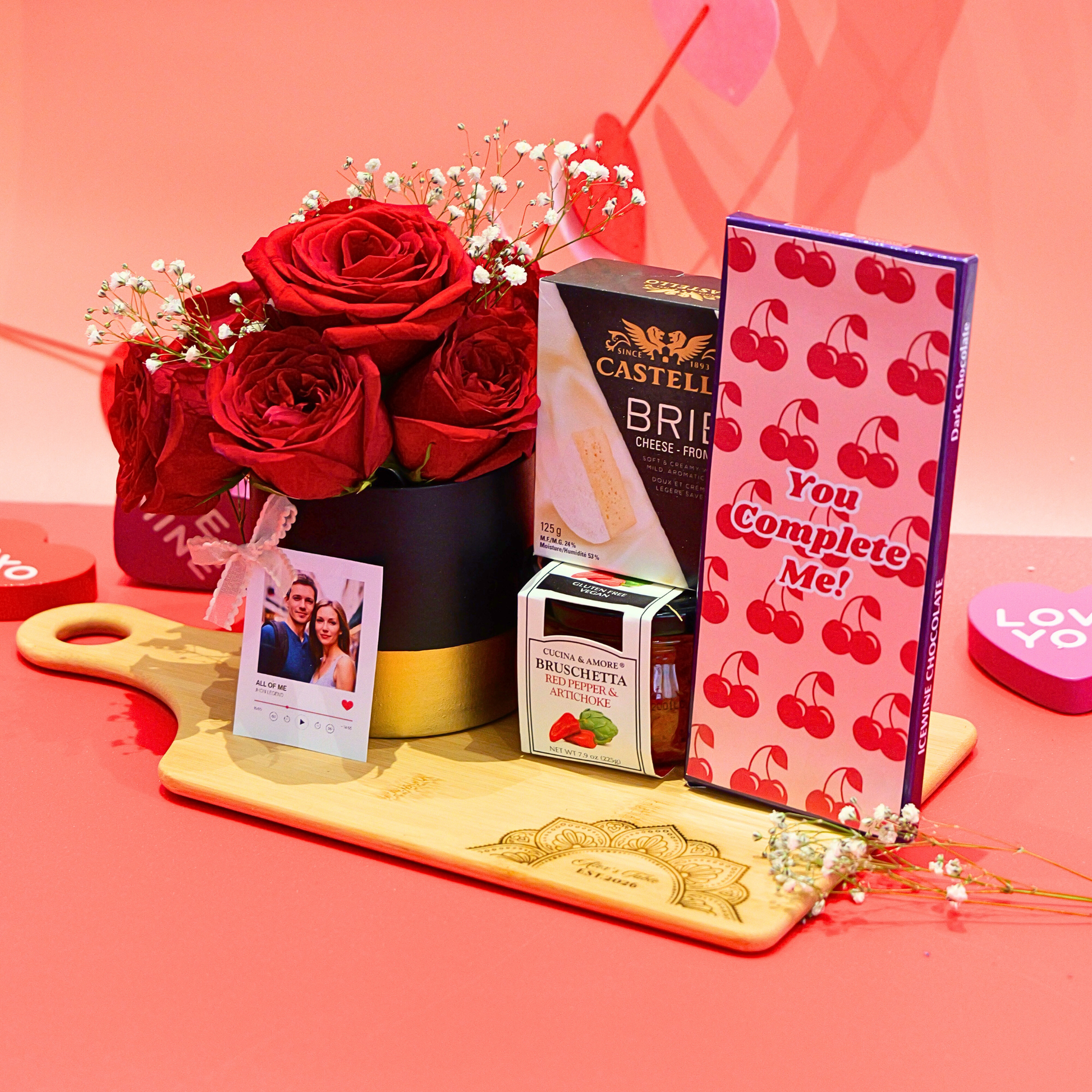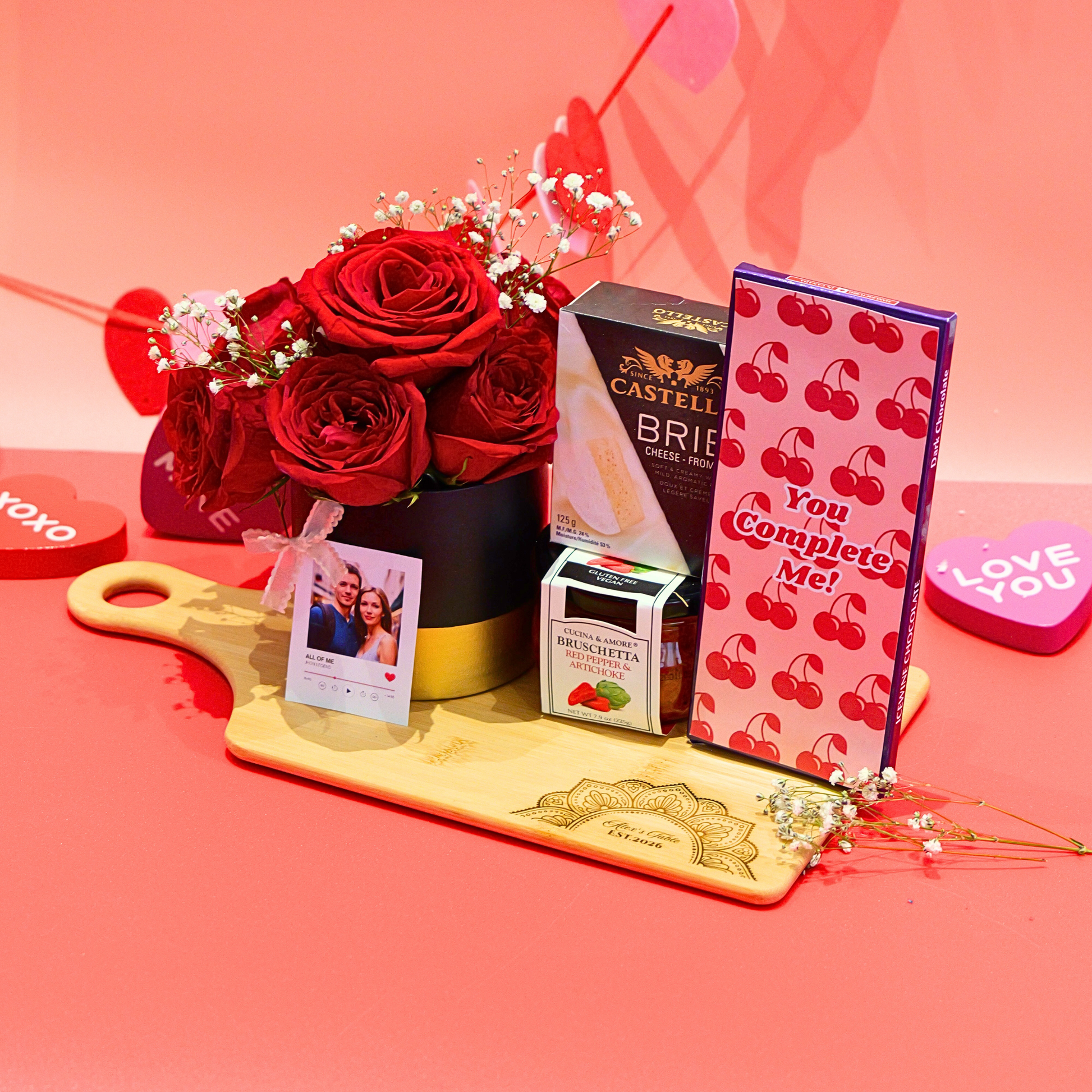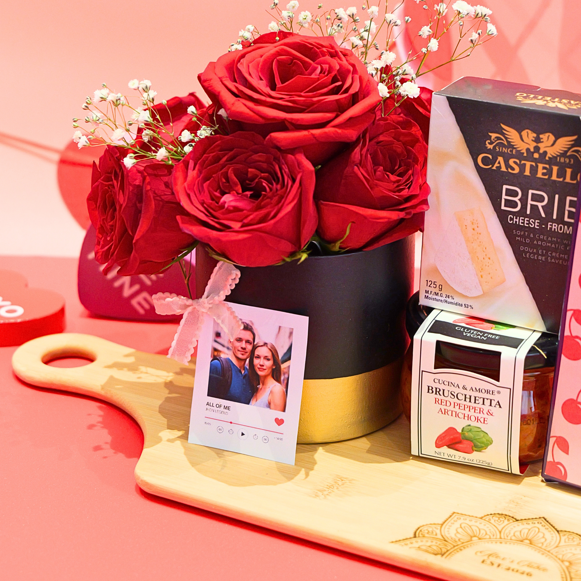 Absolutely. Date Night Fromage is one of our premium valentine gift hampers, curated to combine gourmet flavours, florals, and personalised touches.