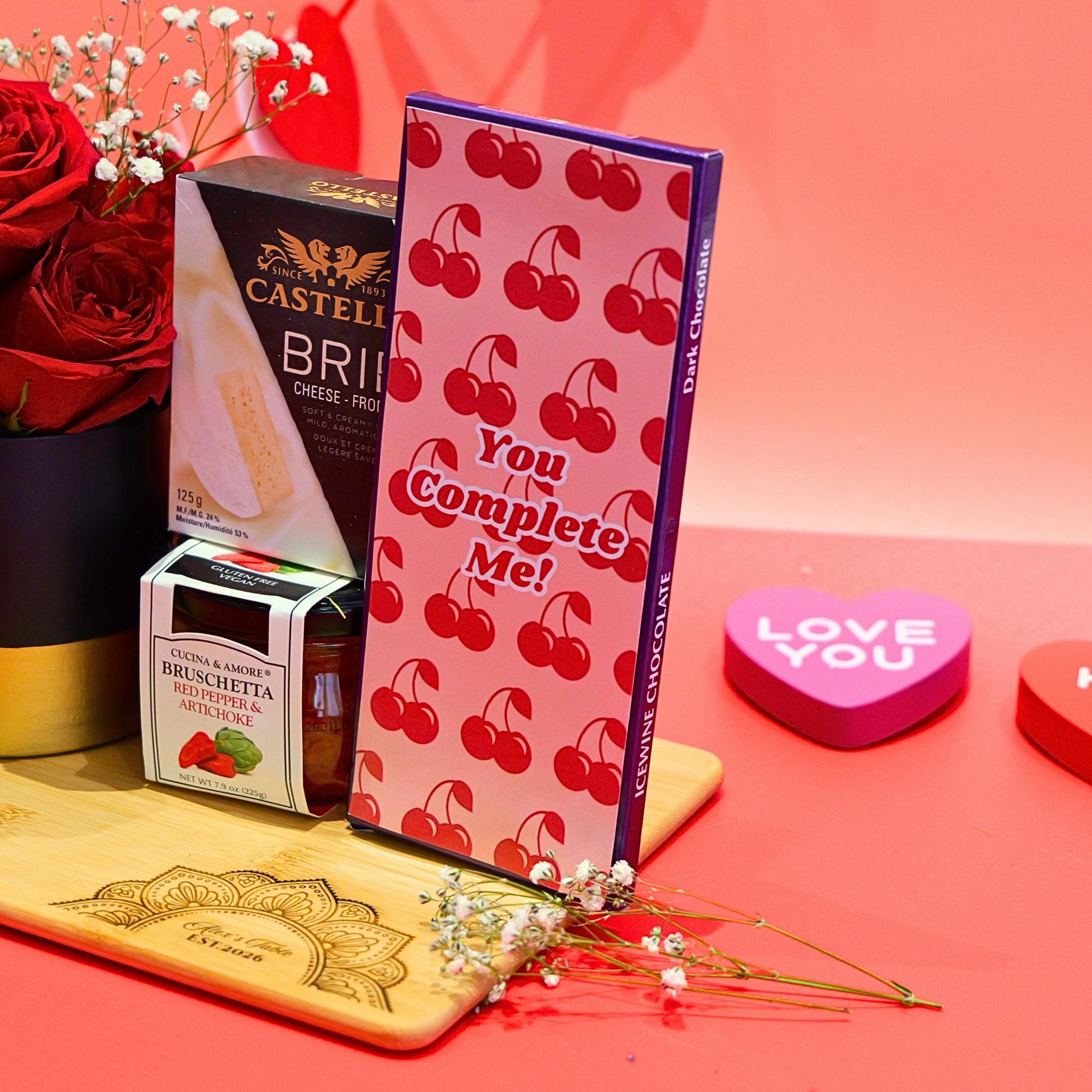 Blending personalised details with gourmet flavours, this Valentine-ready selection is perfect for creating a cosy date-night setting. Date Night Fromage stands out among valentine gift hampers for its balance of elegance, taste, and emotional connection, offering everything needed for a romantic evening made special.