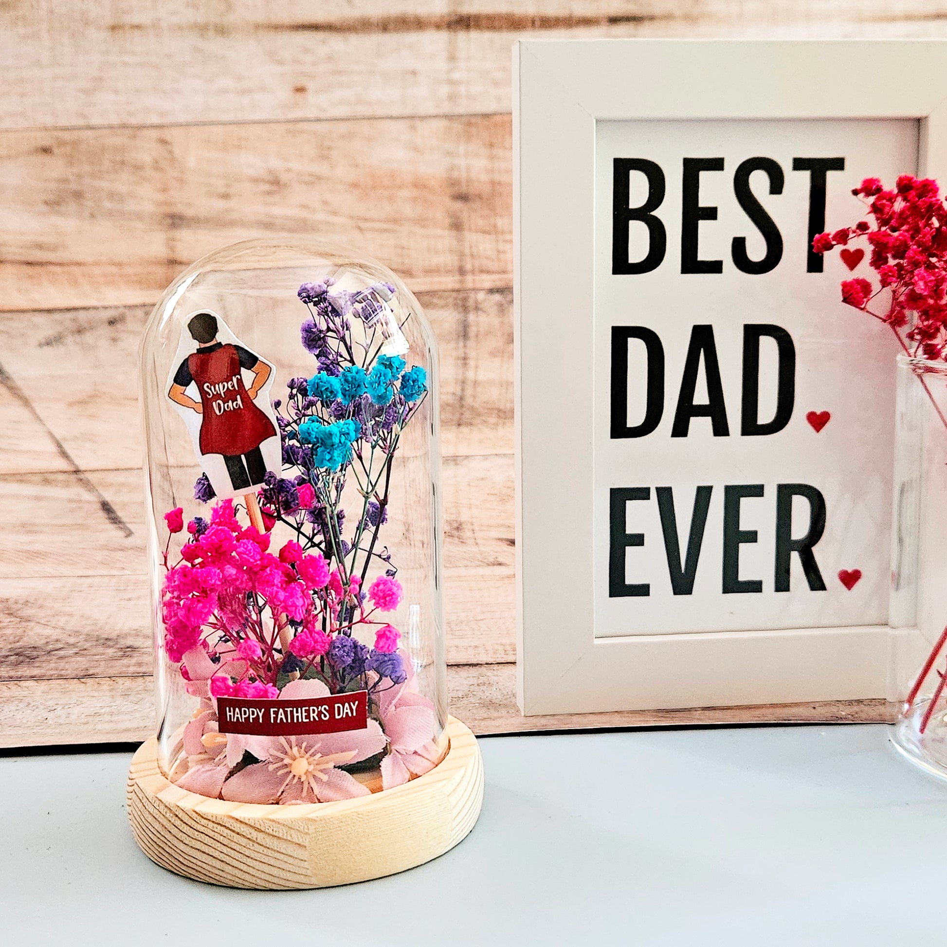 The Personalized Cloche Father's Day Hamper is a heartfelt gift designed to celebrate dads. The contents can be customized as per your taste of gifing and likings, each personalized with a special message or design. The contents of the curated hamper are neatly arranged under a glass cloche. Perfect for showing appreciation, this luxurious hamper combines practicality with a personal touch, making it an ideal gift for Father's Day.