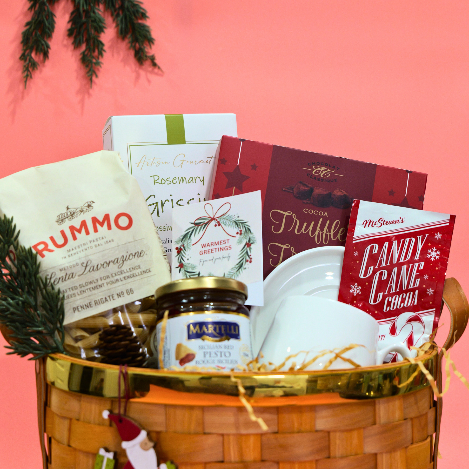 Gift a pasta lover! - Peace & Pine Holiday Basket brings calm and cozy elegance across Canada.